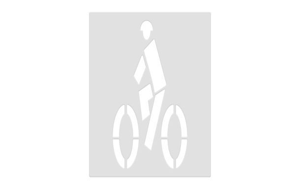Both bike lane stencils (with and without helmet) are commonly used for roadway and trail marking. The version with the helmet is increasingly recommended or required in jurisdictions that promote cyclist safety through visual reinforcement. It signals a stronger safety message, particularly useful in shared-use zones or areas near schools and parks.