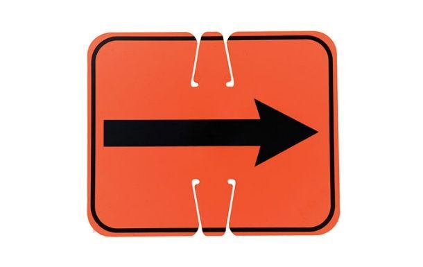 This cone sign clip-on design features a center flap on the top and bottom edge that slides into the top of most standard traffic cones. This allows you to install the sign right side up or upside down, letting the arrow point left or right depending on the layout of your space. If your traffic pattern changes, just remove and flip the sign, no extra tools are needed.