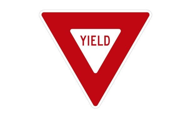This triangular yield sign is meant for use at merging points, private roads, facility exits, or anywhere driver caution is required.